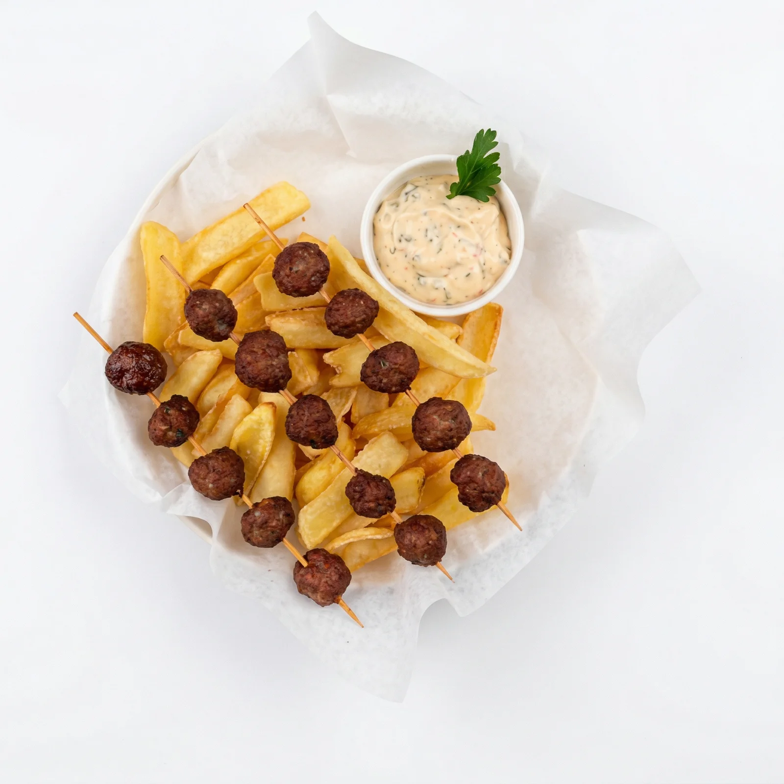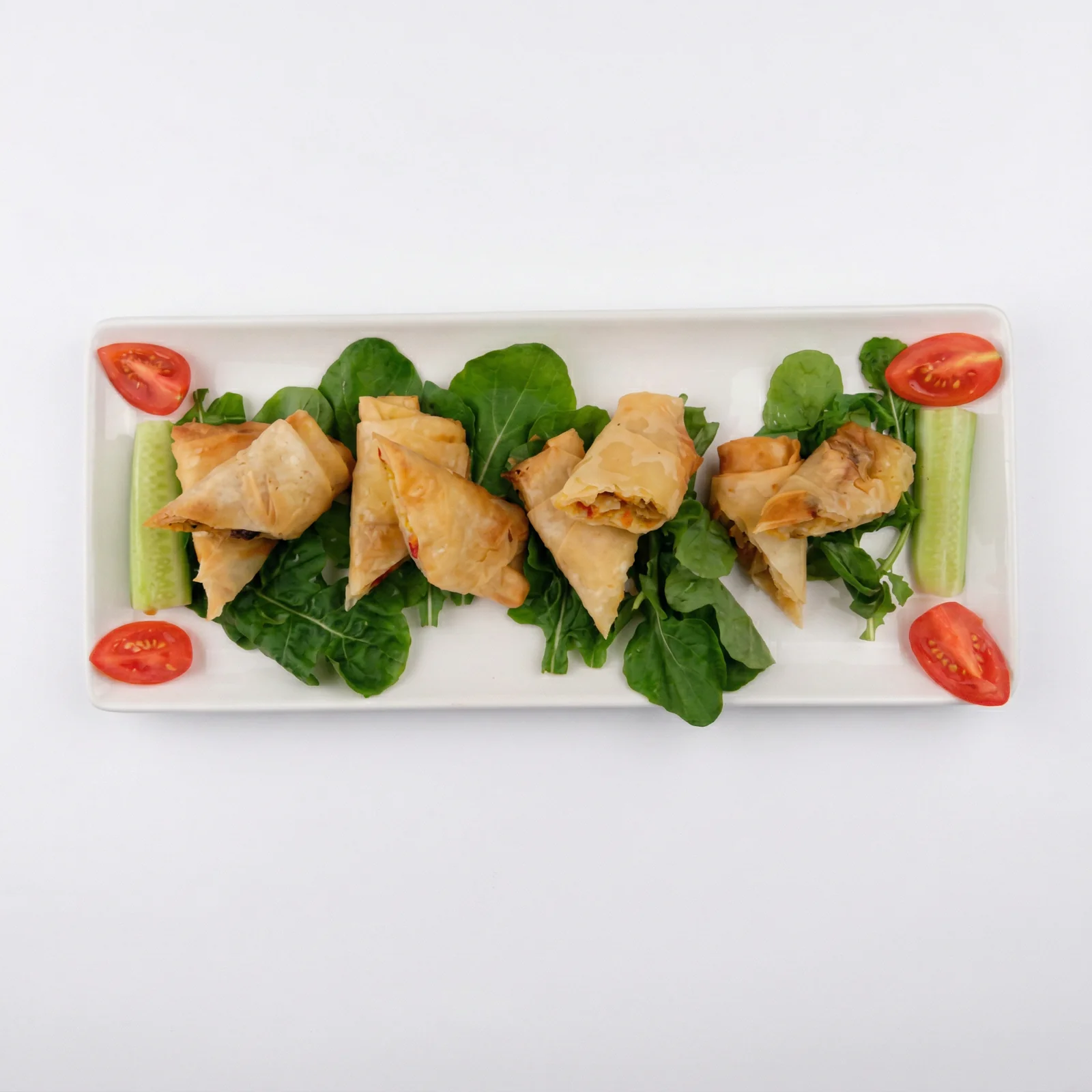 Çıtır tavuk, Kaşık Patates, Mozarella Stick, Misket Köfte Şiş, Soğan Halkası, Çin Böreği ve Bang Bang sos ile servis edilir.