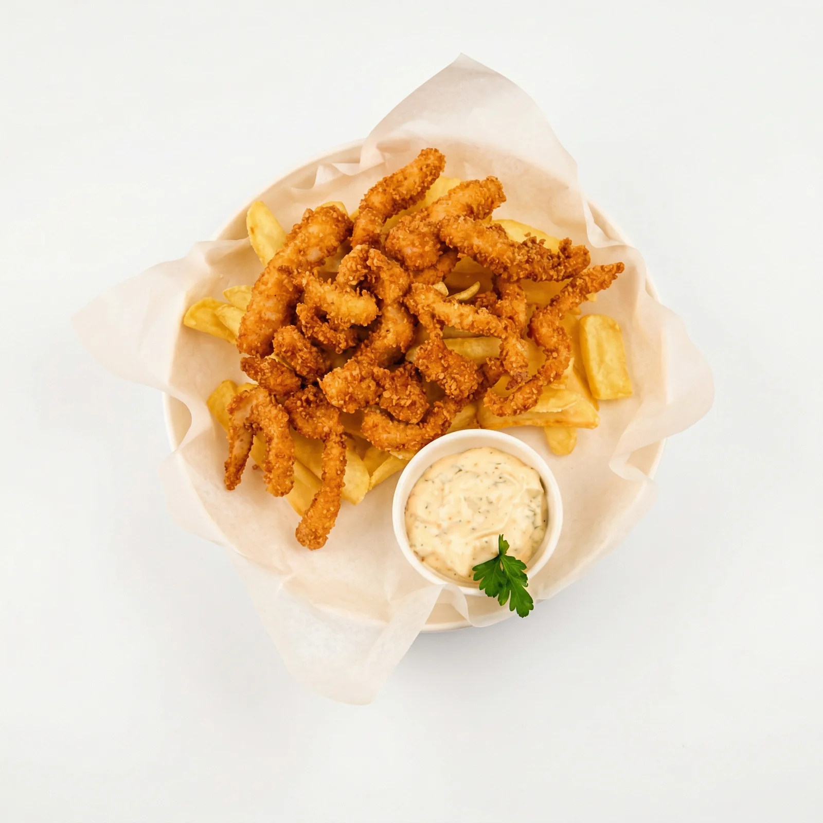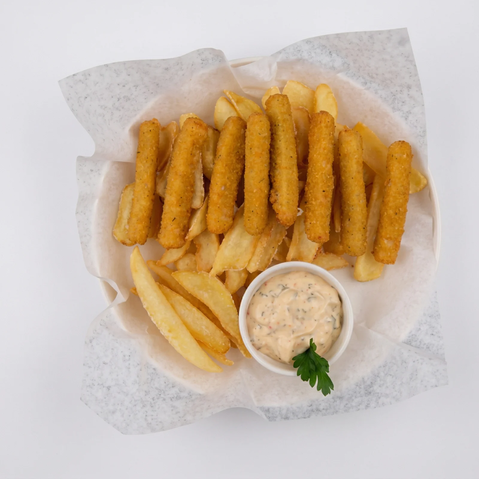 Çıtır balık fileto, Kaşık Patates ve bang bang sos ile