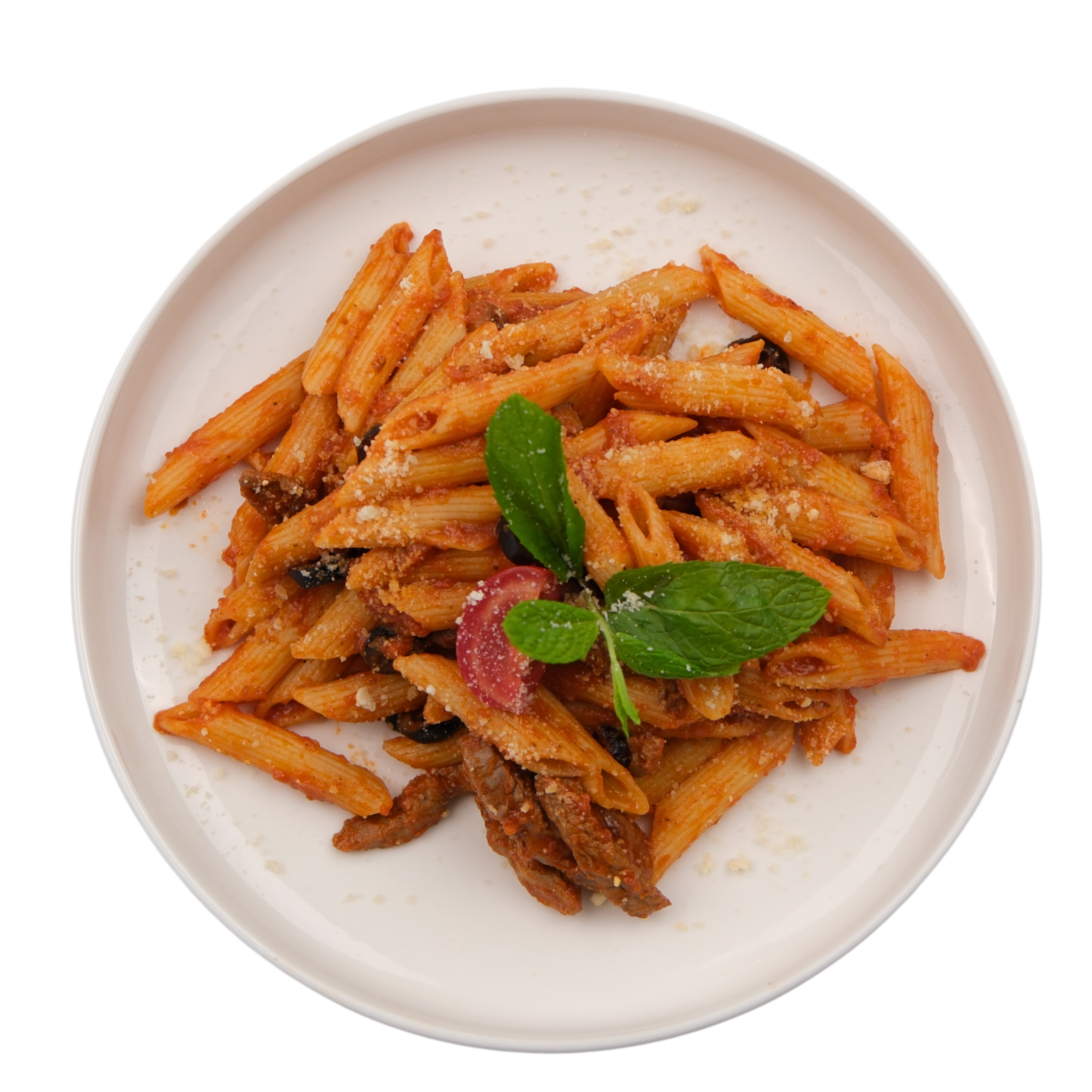 Siyah dilim zeytin, acılı domates sos, parmesan ile
